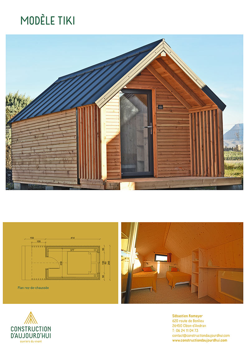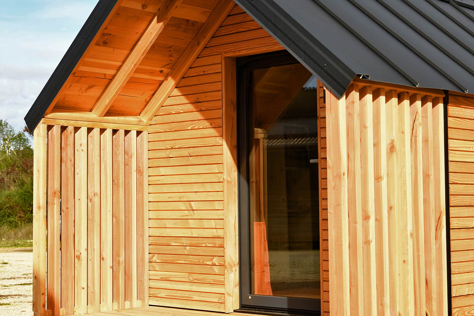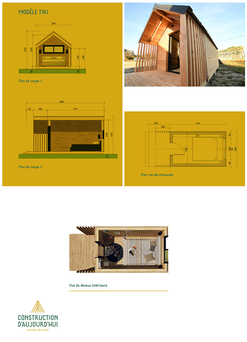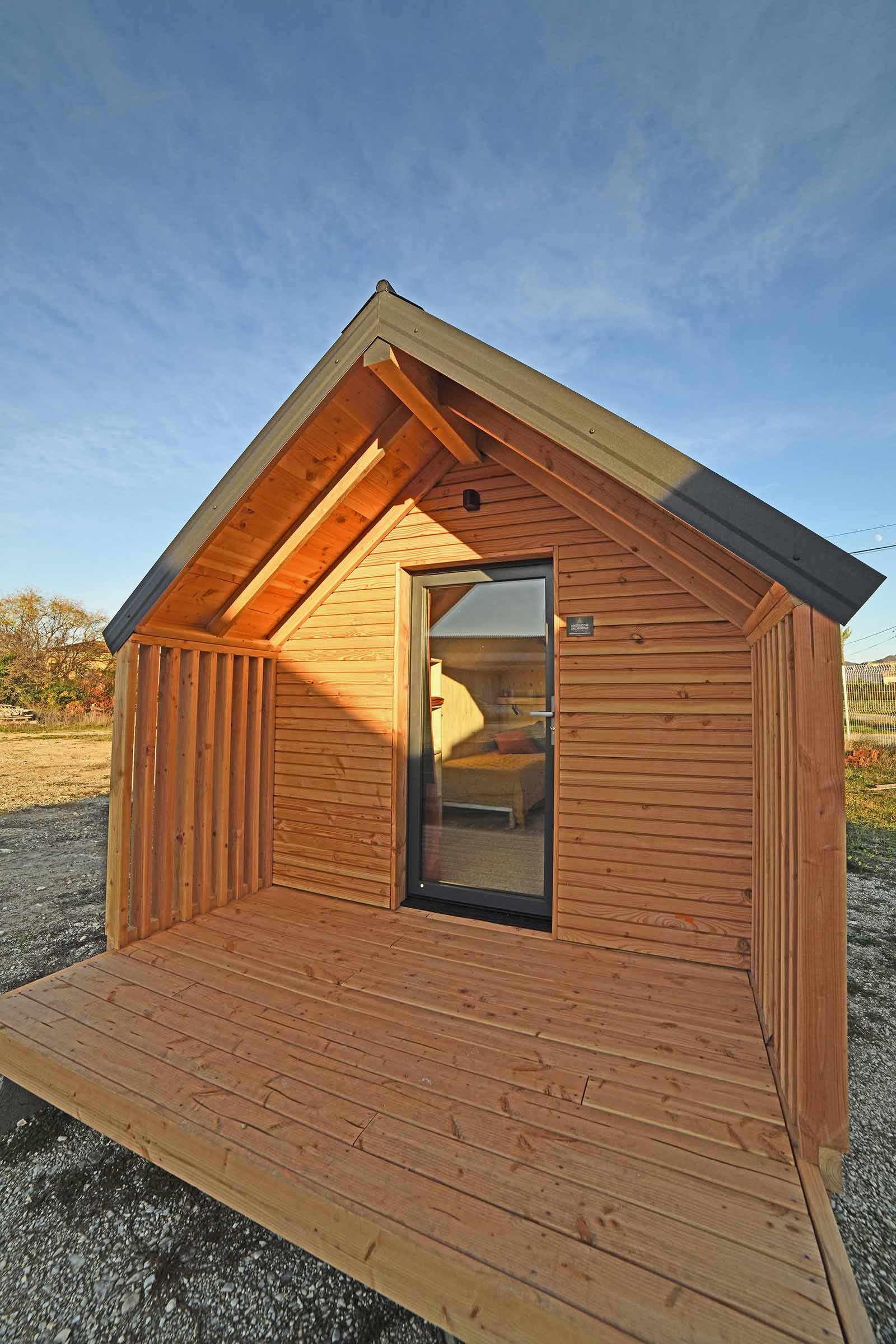 Avec son couchage pour 2 personnes et sa petite terrasse couverte, elle devient l’abri intime, serein, confortable et ressourçant, la cabane de notre enfance.